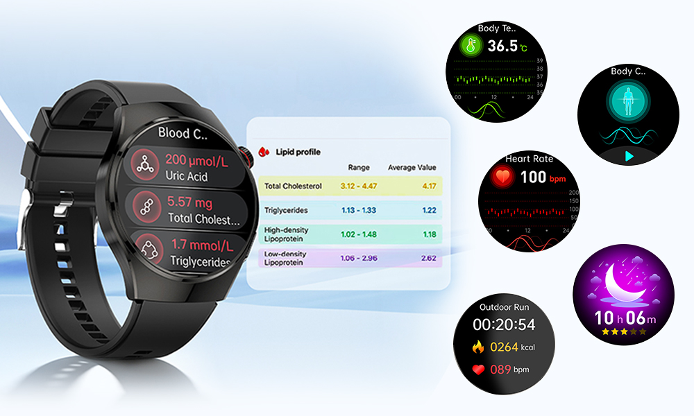 Just by wearing it like a watch, it can accurately monitor the other crucial vital signs of your physique - body composition analysis, heart health analysis, blood composition analysis...